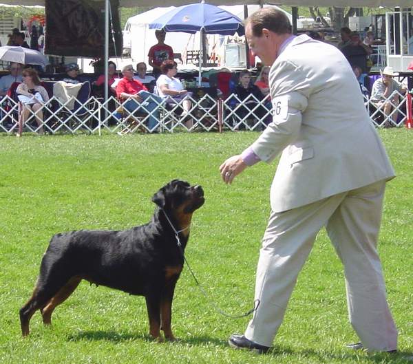 September 4, 2004 Morgan took Winners Bitch for a 4 point Major over 32 bitches at the Mile High Rottweiler Club speciality in Greeley, CO.