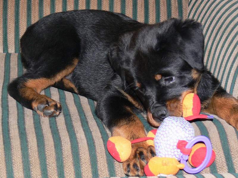 Paris with my daughter's Minature Schnauzer "Juliet" Julie takes the bones away from Paris....